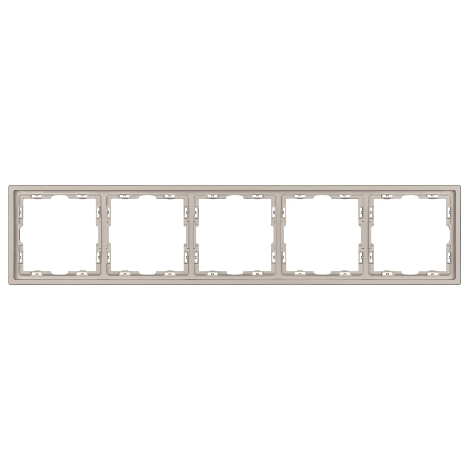Рамка пластиковая на 5 постов, под встраиваемый механизм. Цвет - кашемир, с Soft-Touch поверхностью. Среднего уровня герметичности IP20. Ориентация монтажа горизонтальная.