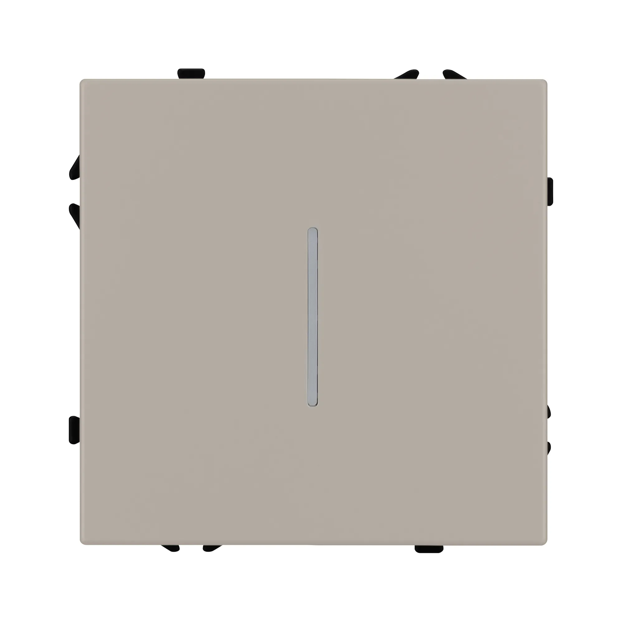 Механизм выключателя света клавишный на 1 пост 1 клавиша (проходной). Цвет - кашемир, с Soft-Touch поверхностью. Клавиша имеет LED подсветку - cинего свечения. Без фронтальной рамки. Уровень пылевлагозащиты IP20. Выключатель устанавливается в стандартный круглый подрозетник круглого сечения диаметром 60мм.